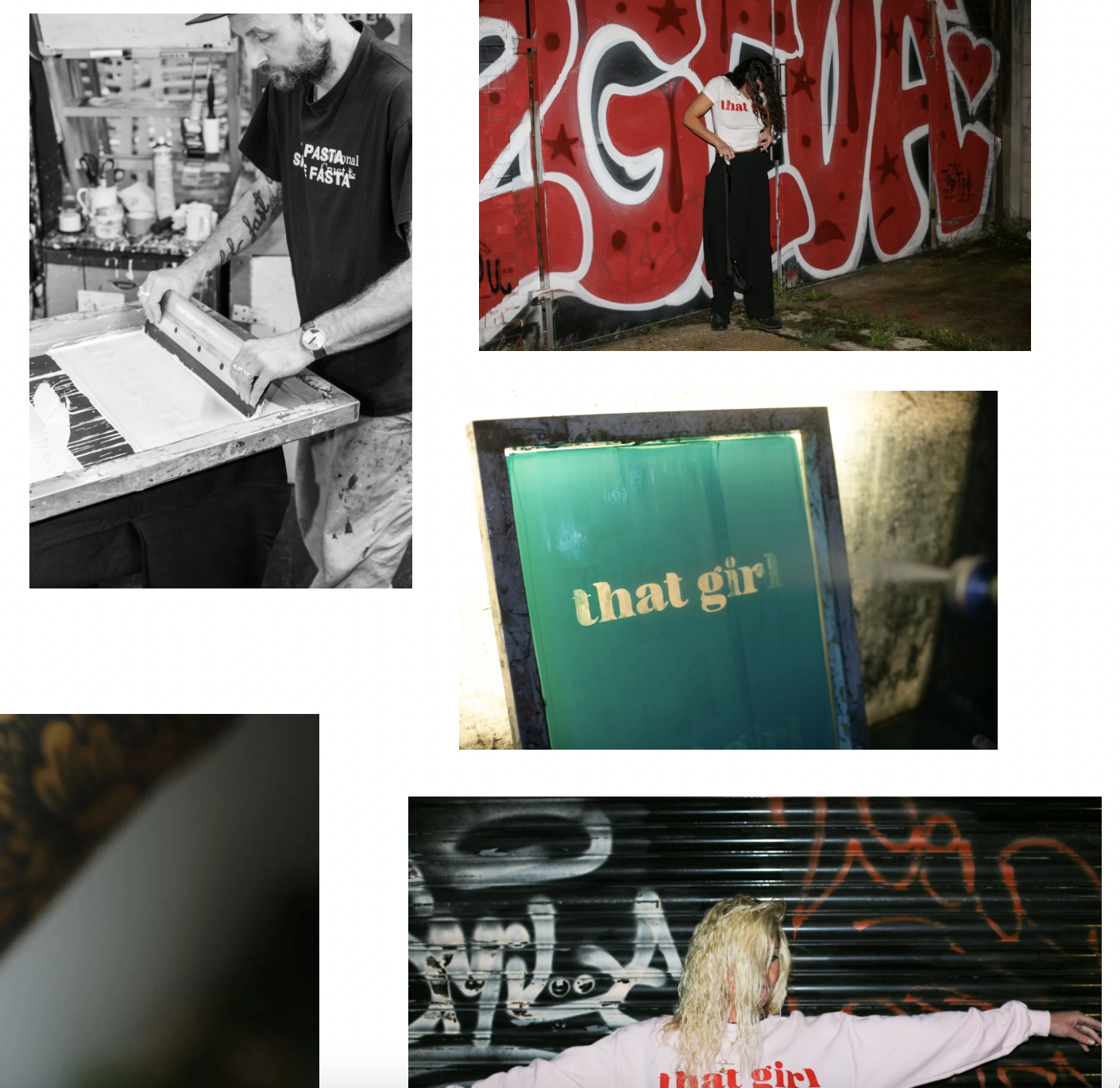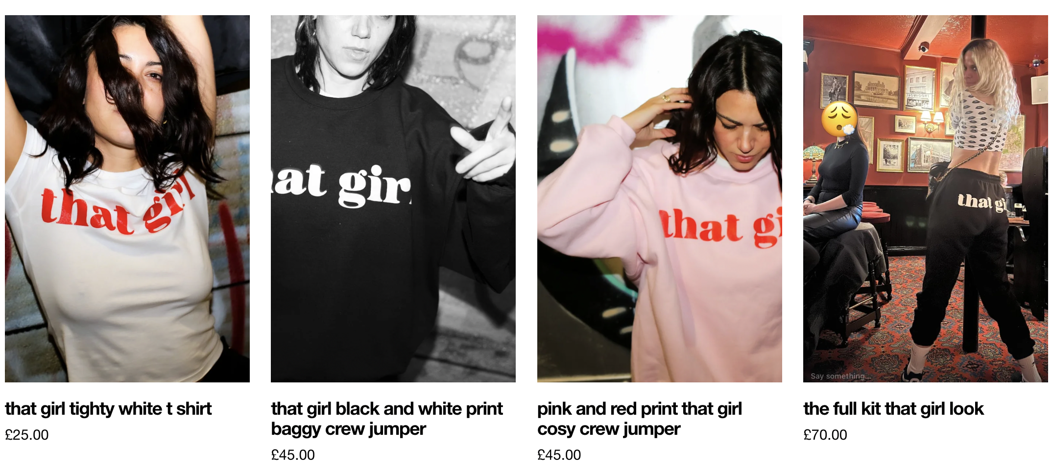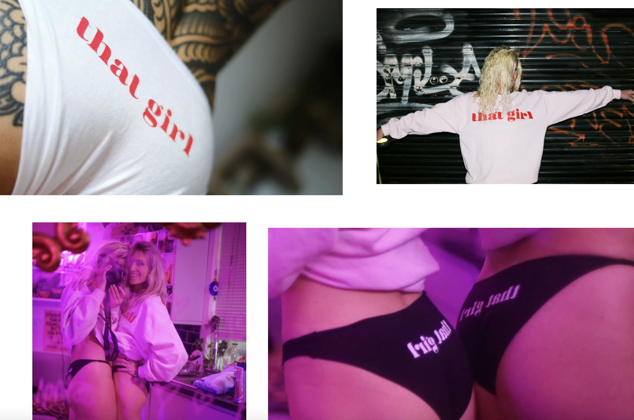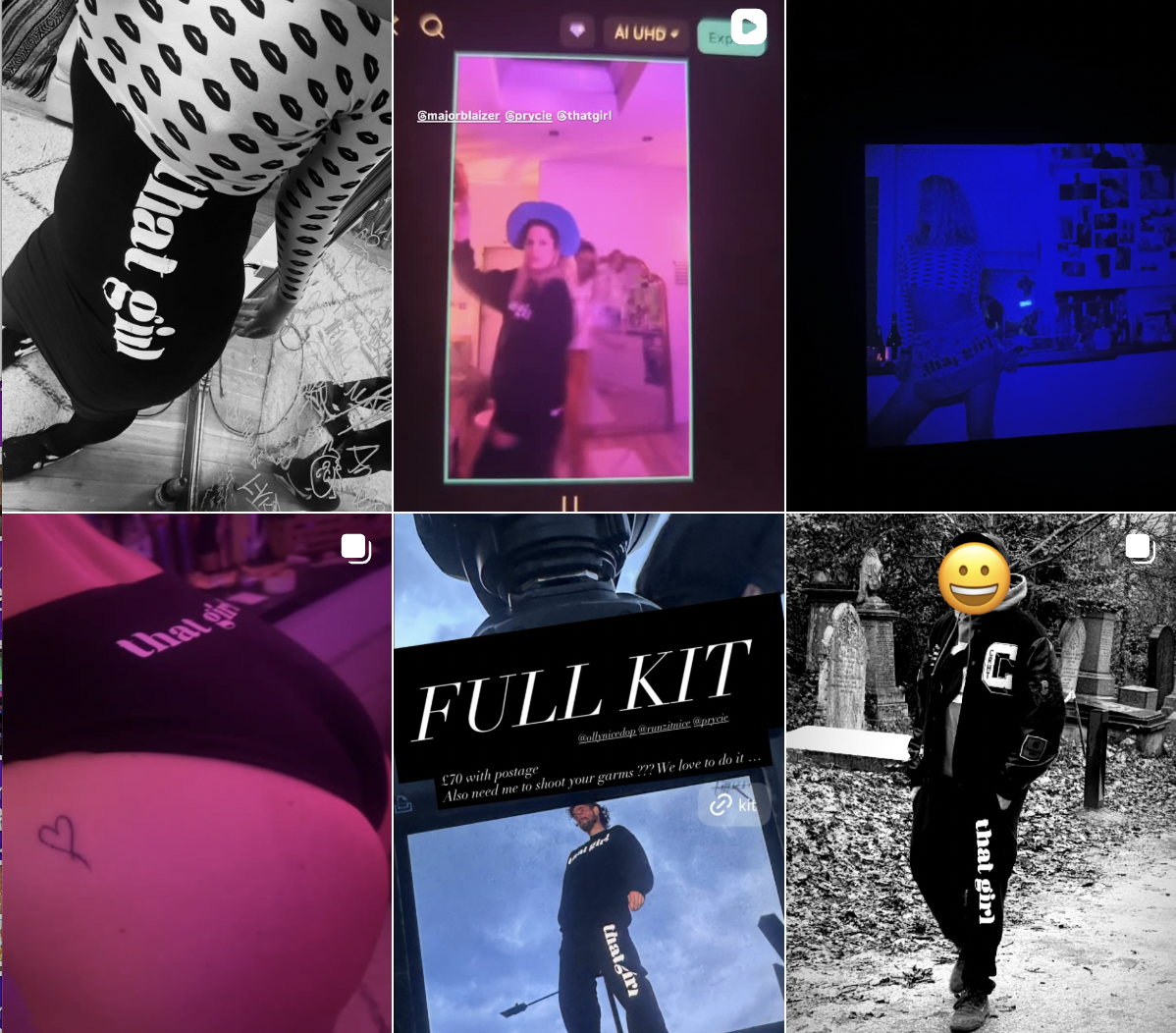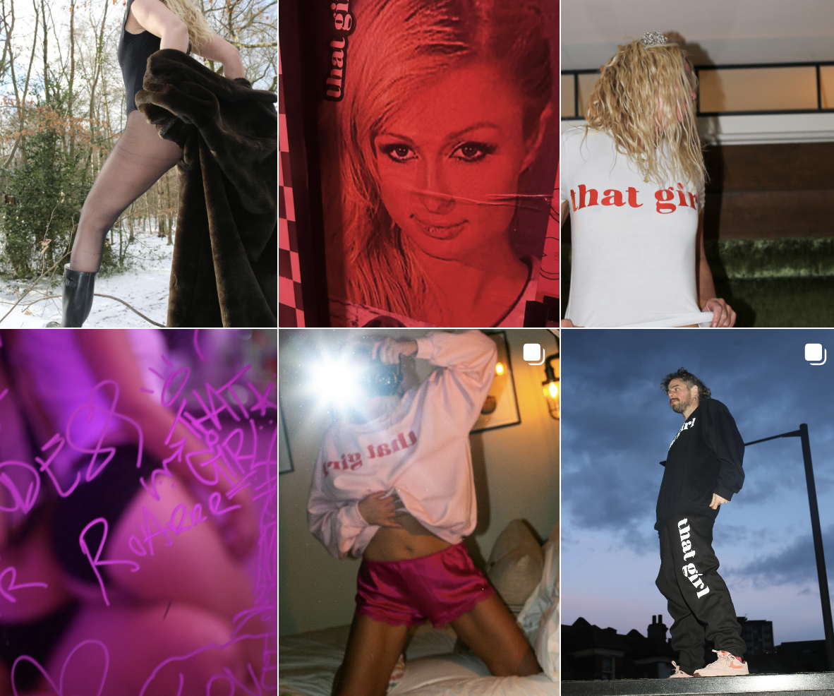 that girl is a streetwear and slogan brand created for passion and fun and for the love of shooting, direction and creating content. Creative, art direction, copy, design and concept by me. Printed at Lovenskate. Photoshoots to films, social content on Instagram and TikTok, reels to reel in the punters. Endless shoots to fuel the various narratives of that girl. Also working on an upcycle collection, printing on second-hand Kappa joggers to Barbie dresses and wavey shirts. that girl has some big ambitions. watch out and here for brand colabs and content creation.